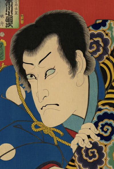 七世市川団十郎は化政期から天保にかけて活躍した歌舞伎俳優、歌舞伎十八番を選定したことでも知られる。五世松本幸四郎は鋭い目つきと高い鼻が特長で実悪(じつあく)と呼ばれる謀反人・大盗賊など、終始一貫して悪に徹する敵役を得意とした。