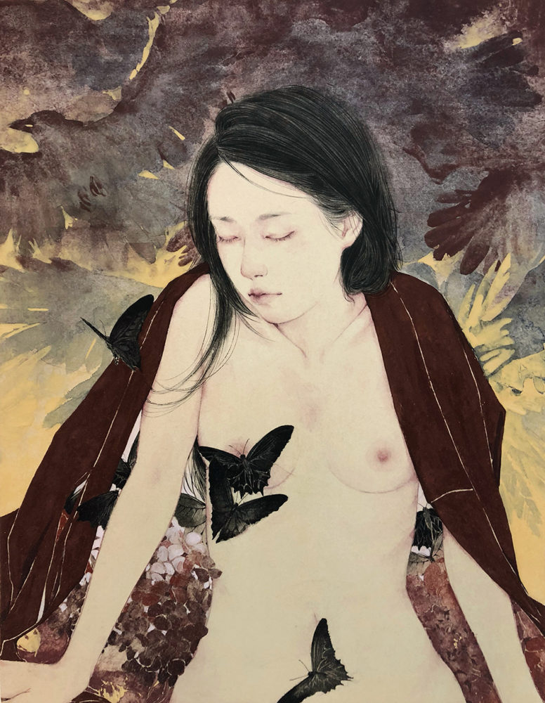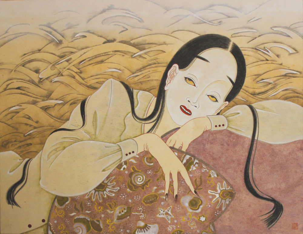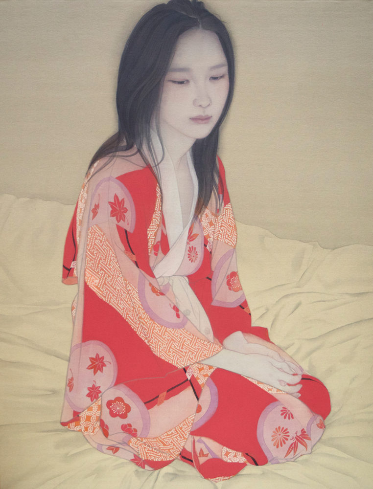 日本画の特徴とされるものが線で何かを表すこととするならば、その「線」の美しさで現代では右に出るものはいないのではないか、と思わせるのが大竹彩奈が女性を描く線である。慎重にさりげなく選びとられた線が、日本女性の色香を余すところなく表現する。日本画という技法がこれほど女性像を描くのにふさわしいものであったのかを改めて気づかされる彼女の作品たちは、まだそのドラマを始めたばかりである。