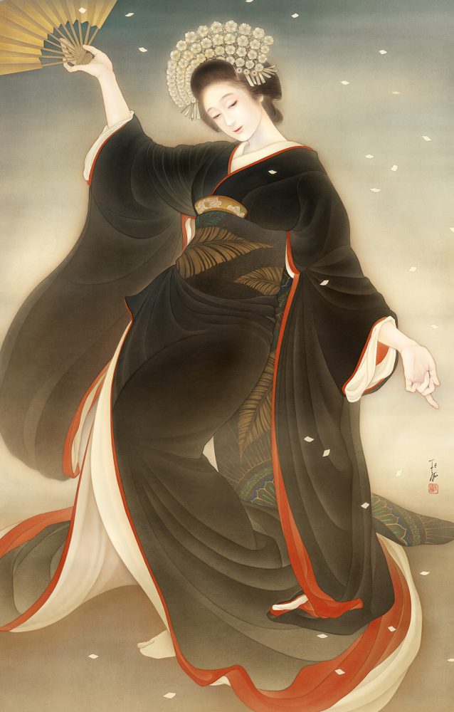 甲斐荘の描く舞う女の着物姿は肉感を拾い過ぎてシルエットはボディコンシャスで。