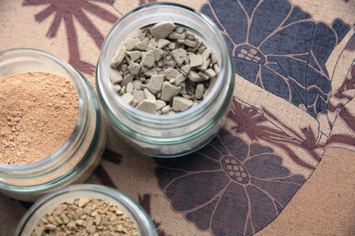 二色の土色の重なりは織物のような風合いの柔らかな肌色になる、私が十数年掛けて見付けた肌色だ。