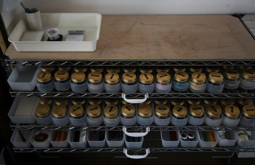 偶然に出来た色面を再現するには時間が掛かった、毎日色見本を作り続けた。