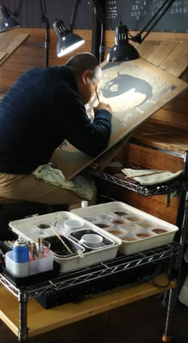問:制作プロセスについて教えて下さい。岩絵の具や膠を使うのはどうしてですか?こだわっている画材があったら其れについてもお願いします。