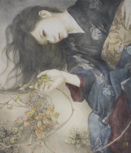 いわゆる美人画を描く画家の「仲間」を探していた池永が、連絡先のわからない謎の画家として時折口にしていたのが岡本の名前と作品であった。ネットで見つけた彼女の絵は、不可思議な熱を帯びて視線をそらさない魅力があった。