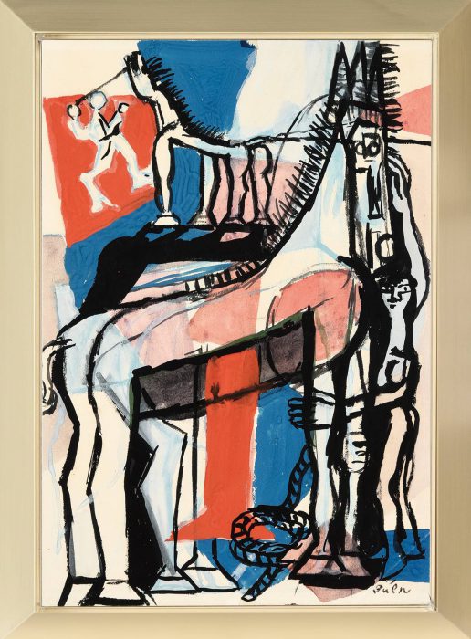 明治35(1902)香川~平成5(1993)東京 洋画家。本名玄一郎。旧制丸亀中学校(現:香川県立丸亀高等学校)卒業後、上京し本郷洋画研究所に通ったのち、東京美術学校(現:東京芸術大学)洋画科に入学。藤島武二に師事し、在学中に帝展への入選を果たすも中退。戦時を挟んだ渡仏・渡米のなかで国際展への出品が続き、高い評価を得る。のちニューヨークやハワイに拠点を移し、独自の抽象表現的作風を確立。挿絵やデザインのほか、壁画などの公共事業も数多く手掛けた。丸亀市に猪熊弦一郎現代美術館がある。