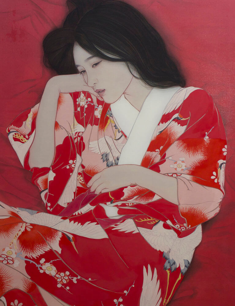 日本画の特徴とされるものが線で何かを表すこととするならば、その「線」の美しさで現代では右に出るものはいないのではないか、と思わせるのが大竹彩奈が女性を描く線である。慎重にさりげなく選びとられた線が、日本女性の色香を余すところなく表現する。日本画という技法がこれほど女性像を描くのにふさわしいものであったのかを改めて気づかされる彼女の作品たちは、まだそのドラマを始めたばかりである。