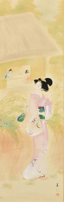 Yamamoto Shoun (1870-1965) was an Ukiyo-e painter Japanese-style painter and lithographer. He studied under Taki Katei. . While he created frontispieces and illustrations as a news painter, he also showed paintings such as Beauty and Kachoga (Bird-and-Flower Painting) at Bunten Exhibition.
