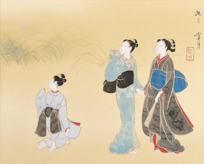 Kikuchi Keigetsu (1879-1955) was a Japanese-style painter from Nagano. After learning from Kikuchi Hobun of Shijo School, he became his adopted child. He left figure paintings in full of dignity
