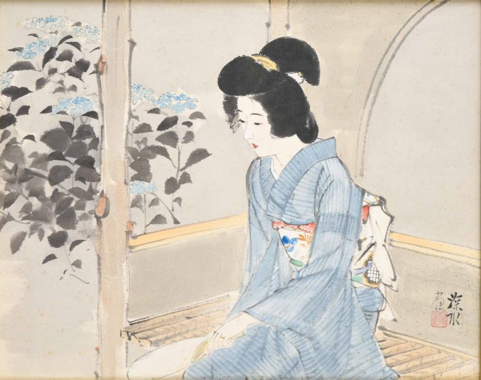 Ito Shinsui (1898-1972) was a Japanese-style-painter in Tokyo, who learnt from Kaburaki Kiyokata and created a new style of Beauty focusing on the modern culture, based on the tradition of Ukiyoe.
