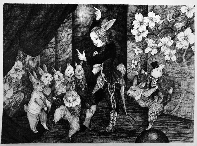 それらを「絵」という四角い劇場に描き出す事が出来たらばどんなに嬉しいだろうという期待は、源泉のように澄んだものであり続けたいと思っています。