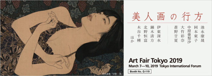 アートフェア東京 2019では現代画家5人と物故作家を展示する。今日的な「美人画」は何をやろうとしているのか、どこに行こうとしているのか、今あなたの感覚で見定めていただきたい。