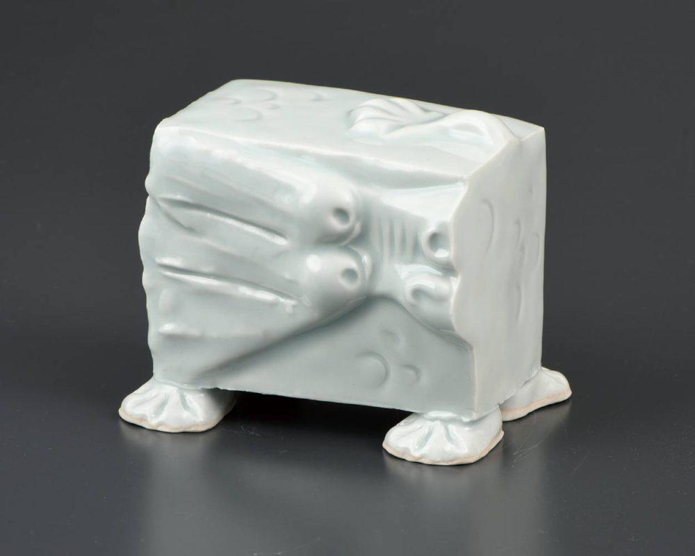 赤褐色の焼締と青白磁の作品群はそのものらしさを失うことなくデフォルメされ、愛玩すべき造形美が認められます。