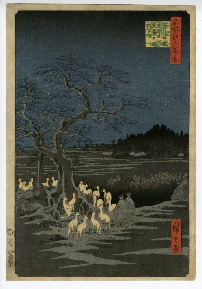 広重「名所江戸百景 王子装束ゑの木大晦日の狐火」