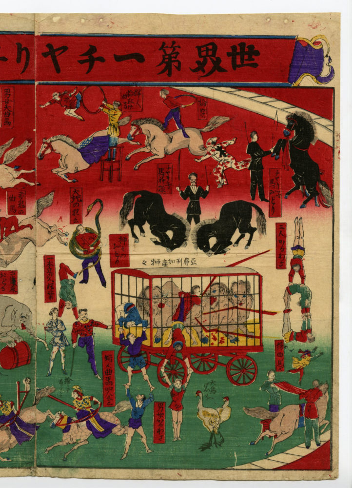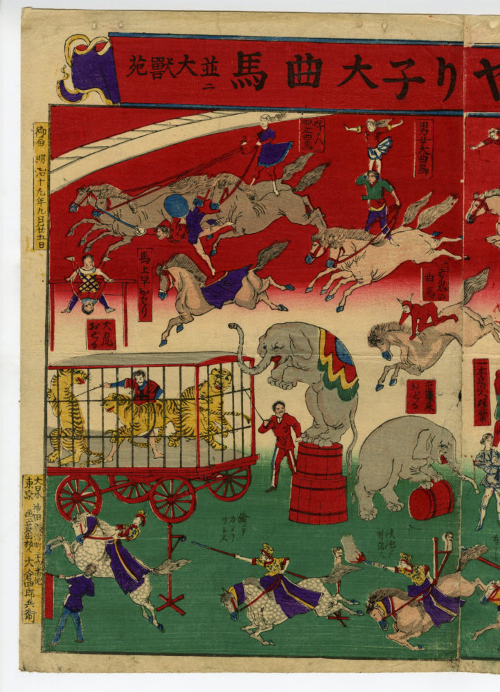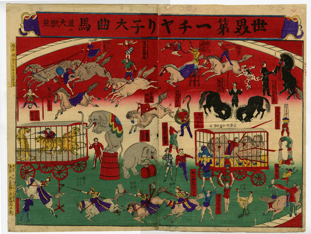 ゾウやトラ、ライオンの芸や、様々な色の馬による西洋曲馬、軽業など豊富な芸を一同に介して楽しませるサーカスの形態は、それまで芸種別に興行を行っていた日本の見世物に対して新鮮で迫力があり、大人気となりました。
