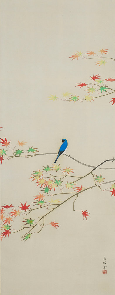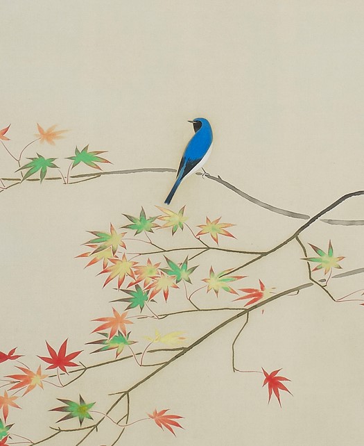 やがて南方へと旅立つ瑠璃色の鳥は、順々に色づく紅葉に晴朗な秋の訪れを感じているのでしょうか。