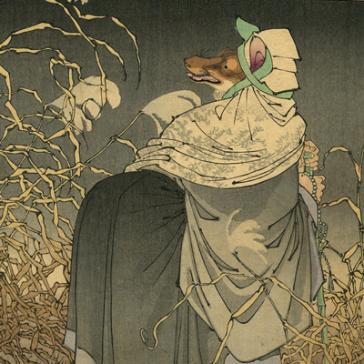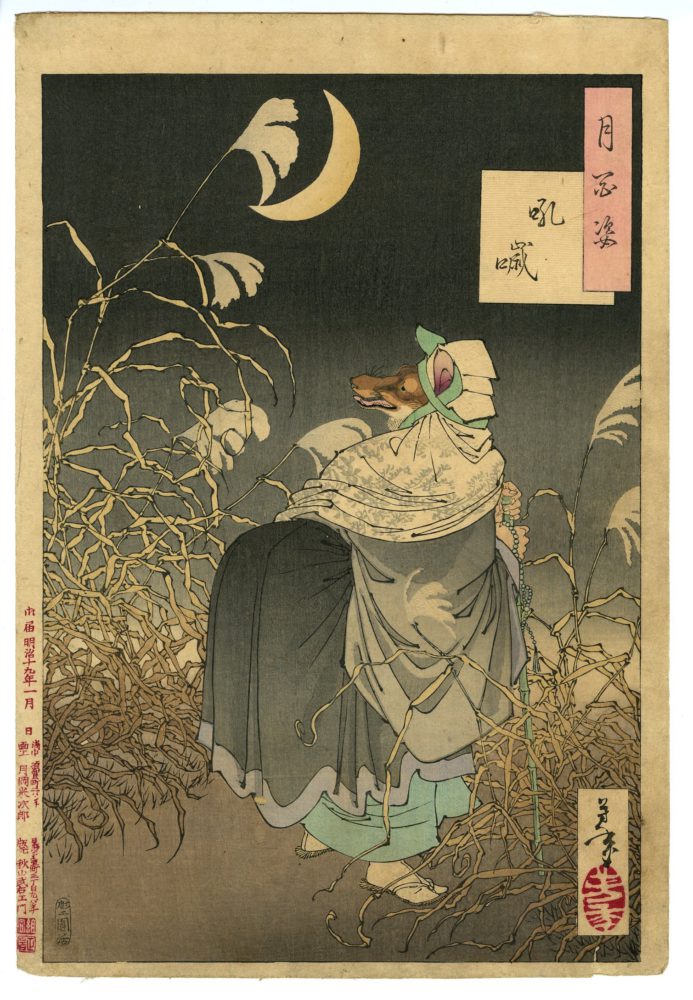 芳年は狂言「釣狐」からこの絵の着想を得たようです。