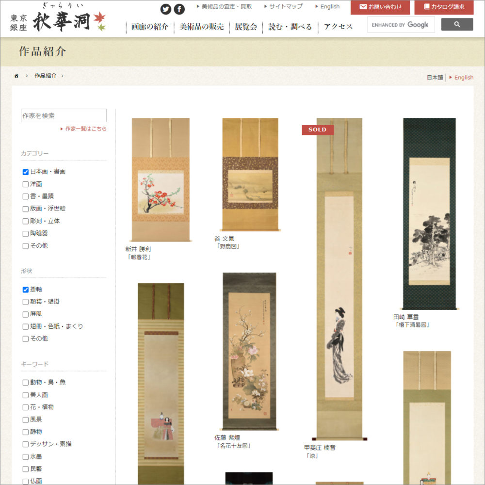 ホームページやカタログ掲載されている作品はほんの一部ですので、お探しのお作品がございましたらお気軽にお問い合わせ下さい。在庫が無い場合はお探しすることも可能です。
