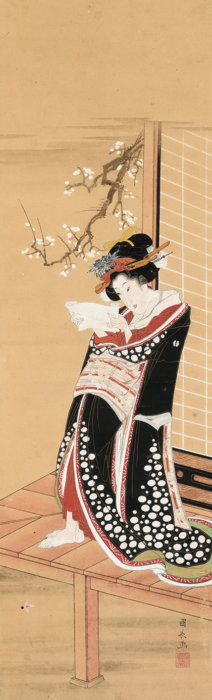 寛政2(1790)?~文政10(1827) 江戸時代後期の浮世絵師。通称、梅干之助(ほやのすけ)。別号に一雲斎。黄表紙の挿絵、美人画、役者絵、名所絵などの立版古(切組絵)を得意とした大判錦絵の他、肉筆の美人画を残す。