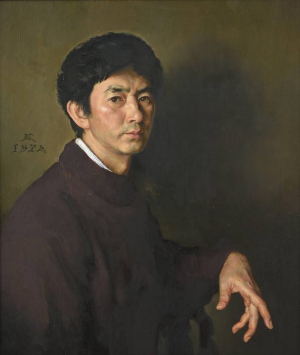 まるでその視線で真理を射抜くが如く、鋭くこちらを見据える画家自身のみを描いた、虚飾なき自画像である。はっきりとした光源と細部までリアルにこだわった描写は、まさしくレンブラントに私淑した牧野ならではであり、その卓越した筆致から生み出される画面は観者に強烈な印象を植え付ける。牧野は個展を終えると引っ越し、まず自画像を描くという。「引越しは自らへの1つの挑戦だ」と語る彼にとって、自画像を描くこともまた1つの飽くなき挑戦であったと言えるだろう。