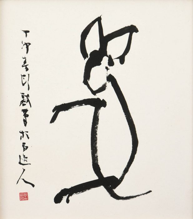 明治45(1912)愛知~平成5(1993) 書家。本名文雄。大池晴嵐に学び、後に西川寧に師事。明清の金石文研究を基礎とした碑学派を研究し、篆隷を土台とした新たな書風を築く。昭和30年には大東文化大学の講師となり、翌年に『近代書道グラフ』(現:『書道グラフ』)を創刊。中国書法の啓蒙にも尽力し、昭和から平成の書壇に一時代を画した。日展常務理事、日本芸術院会員。文化功労者、文化勲章受章。