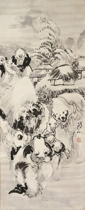 文化3(1806)信濃~明治16(1883年)長野 儒学者、浮世絵師。京都へ遊学し、岸駒に写生画を、三畠上龍に浮世絵を学んだ。江戸に移住した後、佐藤一斎に朱子学を師事し、攘夷論・公武合体論を唱えた。一方で、葛飾北斎を自邸のある小布施に招き、多くの文人墨客と交流を深めた。北斎の門人となり、妖怪画山水図を多数手掛けた。