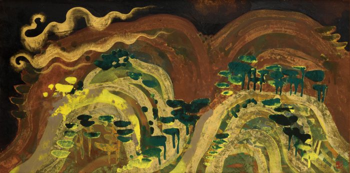 大正13(1924)愛知~昭和52(1977)神奈川 日本画家。中村岳陵に師事。第6回日展に出品、特選となる。36歳の若さで新日展の審査員となるが翌年日展を脱退。その後無所属で活動し、映画や演劇など多方面で活躍。从会結成。東京展市民会議を創設。日本画というジャンルにこだわらず、独自の画風を発表し続けた。