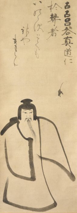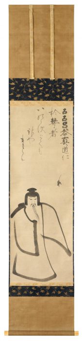 寛永の三筆と謳われた近衛信尹は、日課として天神画賛を百幅書き表したと『古画備考』に伝えられる。昭和時代の書家・古筆研究家であった相沢春洋によれば本作もその一幅であり、画題の渡唐天神は、天神が一夜のうちに渡唐し参禅したという伝承に基づくもの。賛歌は「心さえ清ければ、祈らずとも自ずと神の加護があるだろう」という意味を持つ。のびやかな筆運びと墨の濃淡とともに綴られたこの賛には、信心とは違った信尹の心根まで伺えそうである。