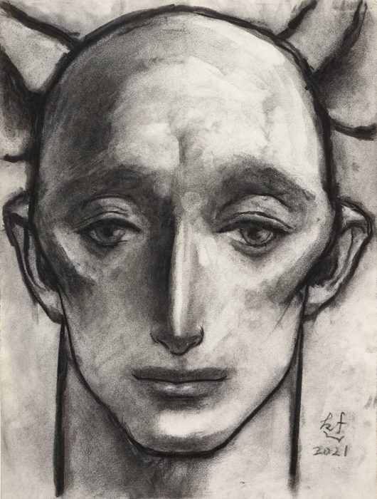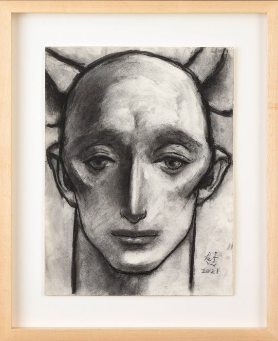 「何を作るか決まっていなくてもデッサンから始めるのですが、何もない白い紙に頭、耳、と線を描いているときに、『あ、こっち』と線の方向が見えるときがあるわけです。地図の上に川が走っていくように、これでつながるって思える瞬間があるのです。」こうして偶然にも生まれた線の発展が「スフィンクス・シリーズ」 のはじまりだ。設計図に偶然が重なり、のちの彫刻の方向性を決定づける。この逸脱の表れに、身体の生成の萌芽が垣間見えるところが舟越のドローイングの興味深い点だろう。