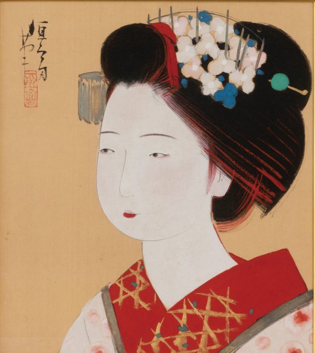 明治13(1880)金沢~昭和22(1947) 日本画家。稲野年恒に師事。文展で活躍した後、美術院の再興に参加し、大阪画壇の重鎮として活躍する。情感溢れる美人画で知られ、個性的な作品群を遺した。