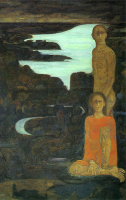 東京美術学校卒。松岡映丘に師事。戦後の苦境の中でゴーギャンの伝記に出会い、画業の原点を掴むきっかけとなる。色彩を押さえた内面的・詩的な絵画空間を創造し、人・家族・自然・宇宙をテーマとした作品を発表する。文化勲章受章・文化功労者。日本芸術院会員。日展顧問。